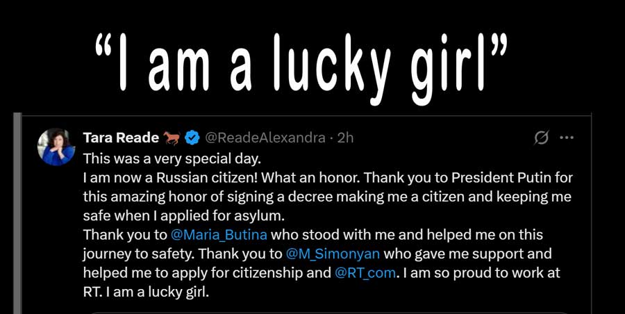 “This was a very special day. I am now a Russian citizen! What an honor. Thank you to President Putin for this amazing honor of signing a decree making me a citizen and keeping me safe when I applied for asylum. Thank you to @Maria_Butina who stood with me and helped me on this journey to safety. Thank you to @M_Simonyan who gave me support and helped me to apply for citizenship and @RT_com. I am so proud to work at RT. I am a lucky girl.”